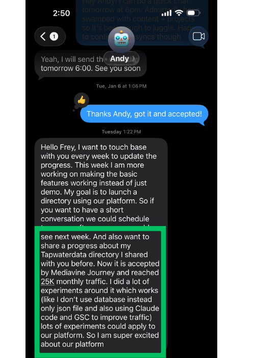 Everything from being accepted into Mediavine (private display ad network, 10k/mo sessions minimum), getting high-ticket lead submissions and organic listing creations - I'm seeing it all unfold.