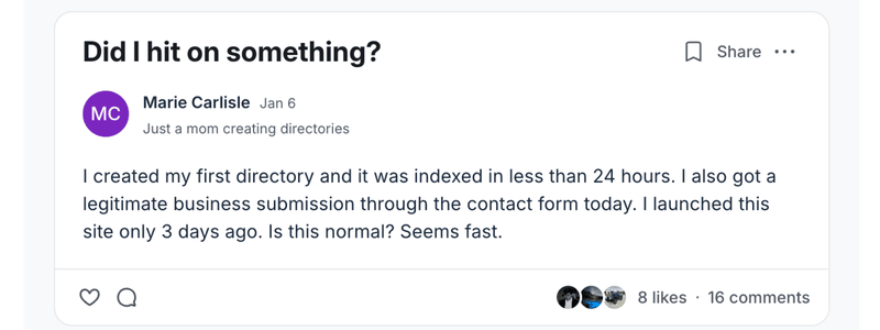So I thought it would be cool to share the wins that normal, everyday people are experiencing with their directories.