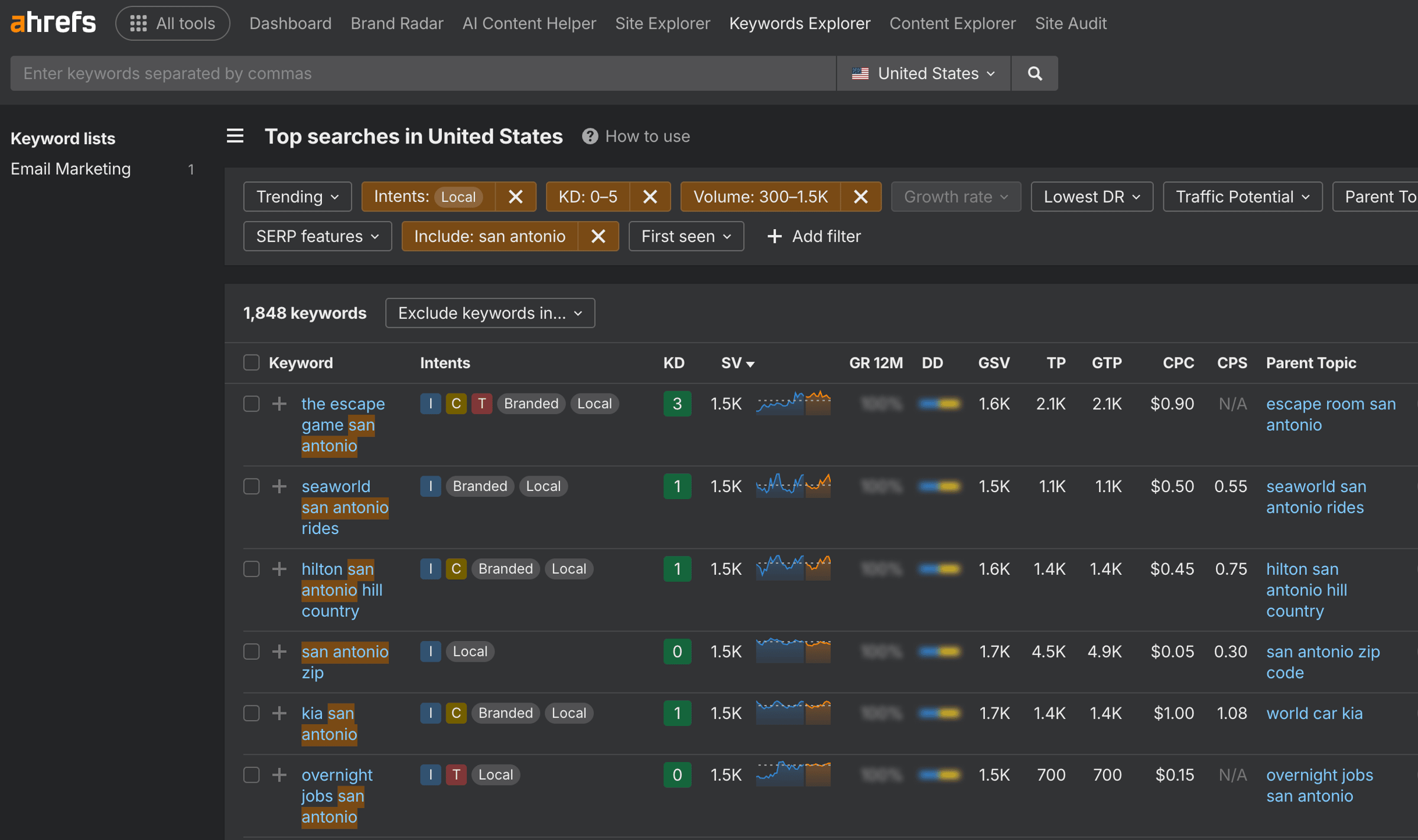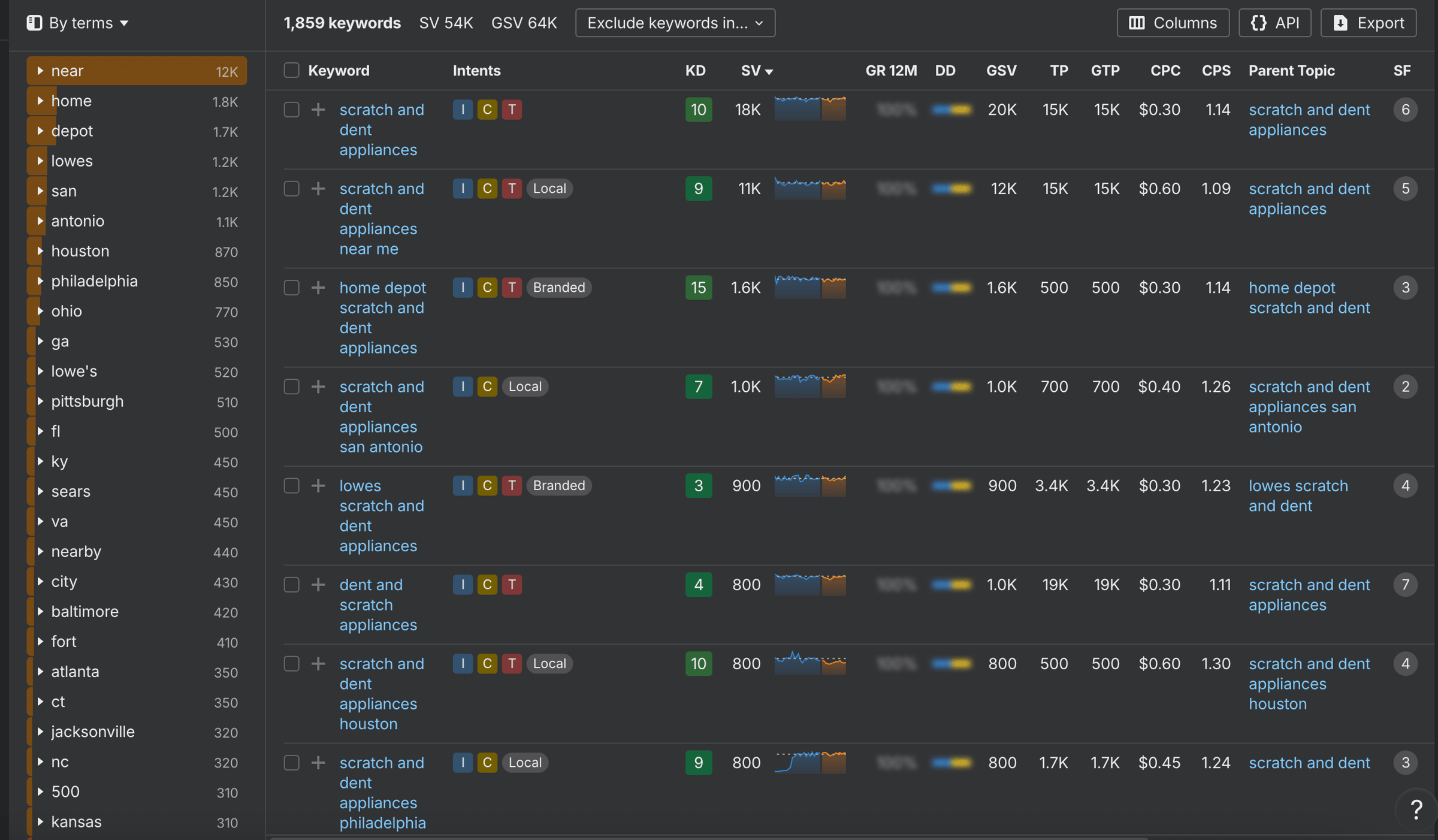 That's how I found the niche "scratch and dent appliances" and, I mean, just look at how beautiful this ahrefs data is.