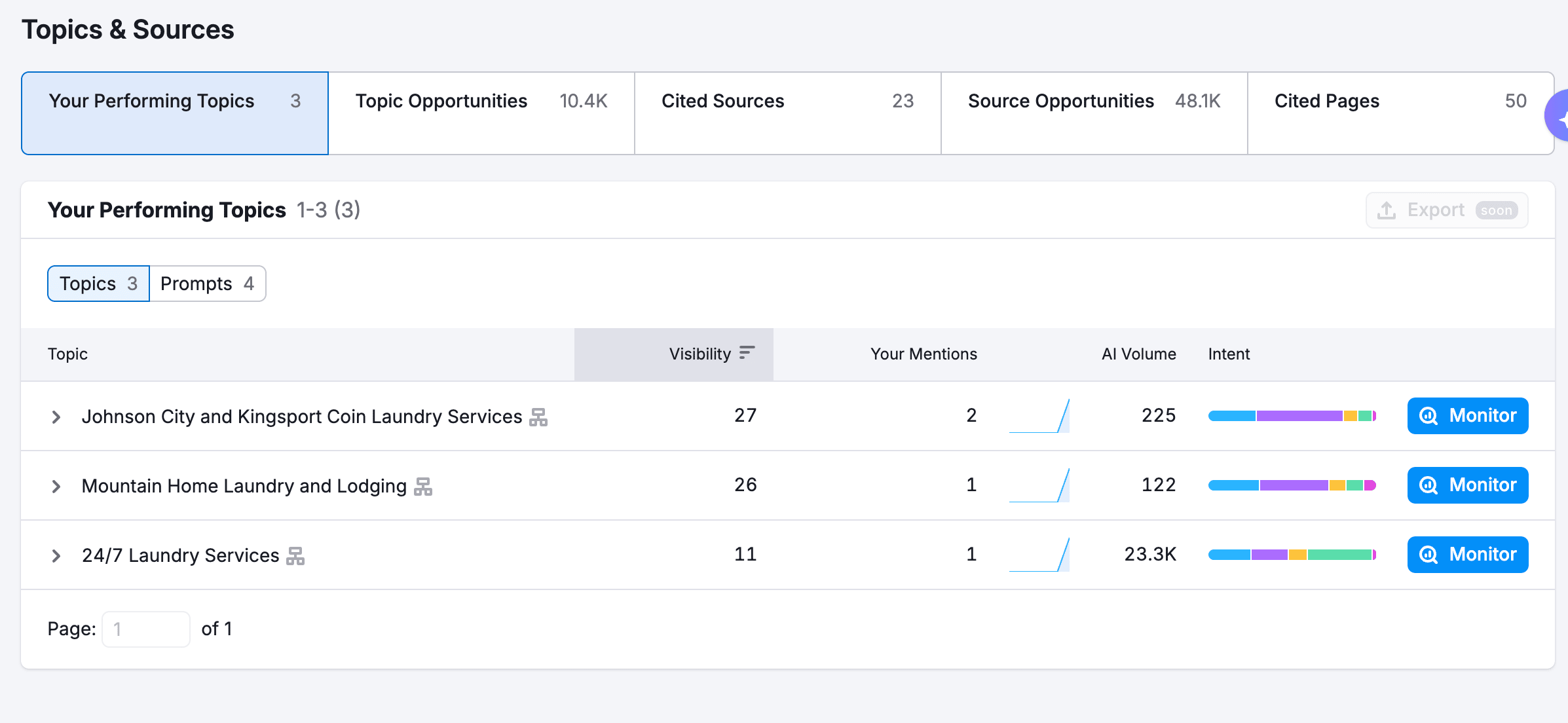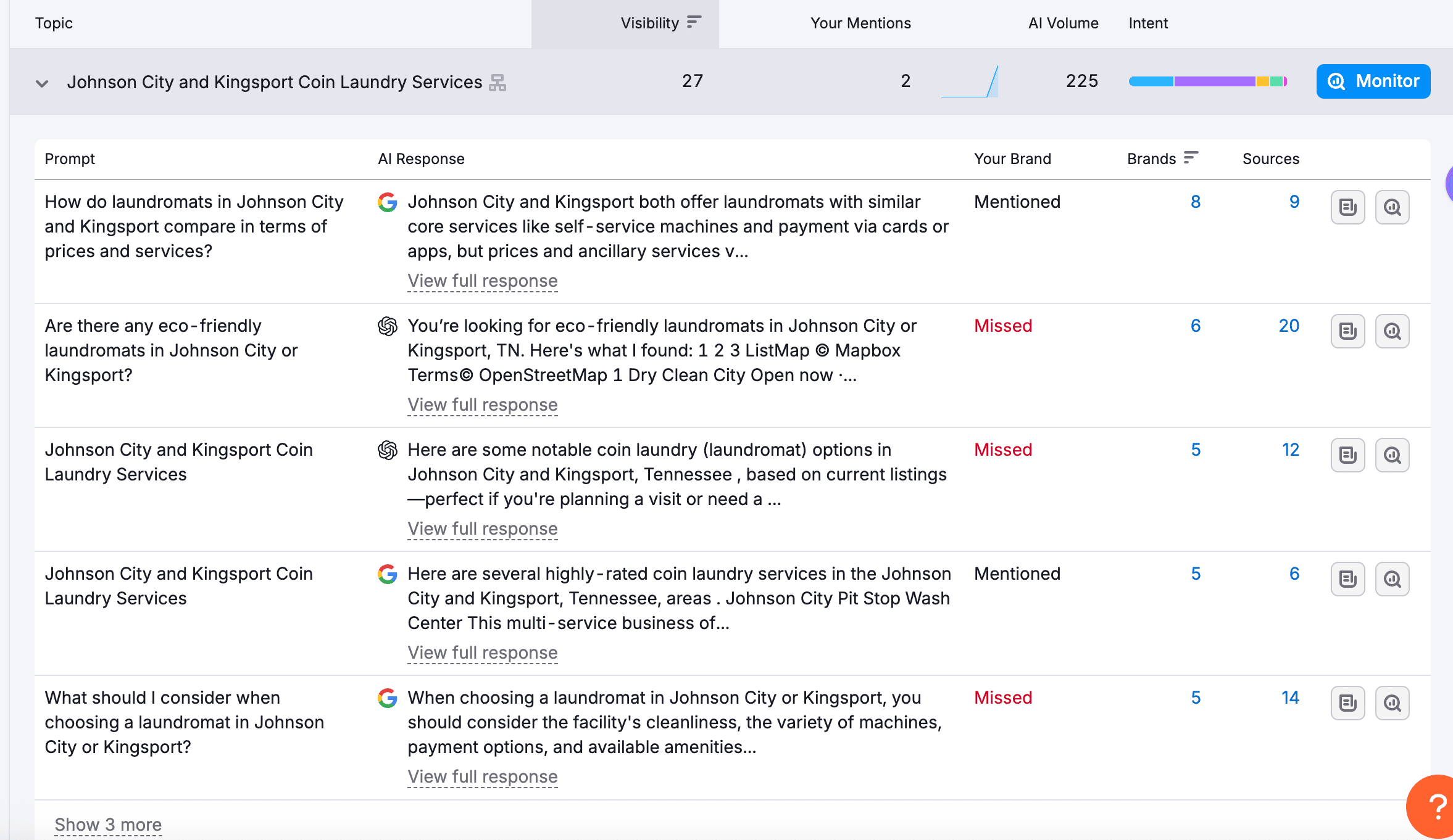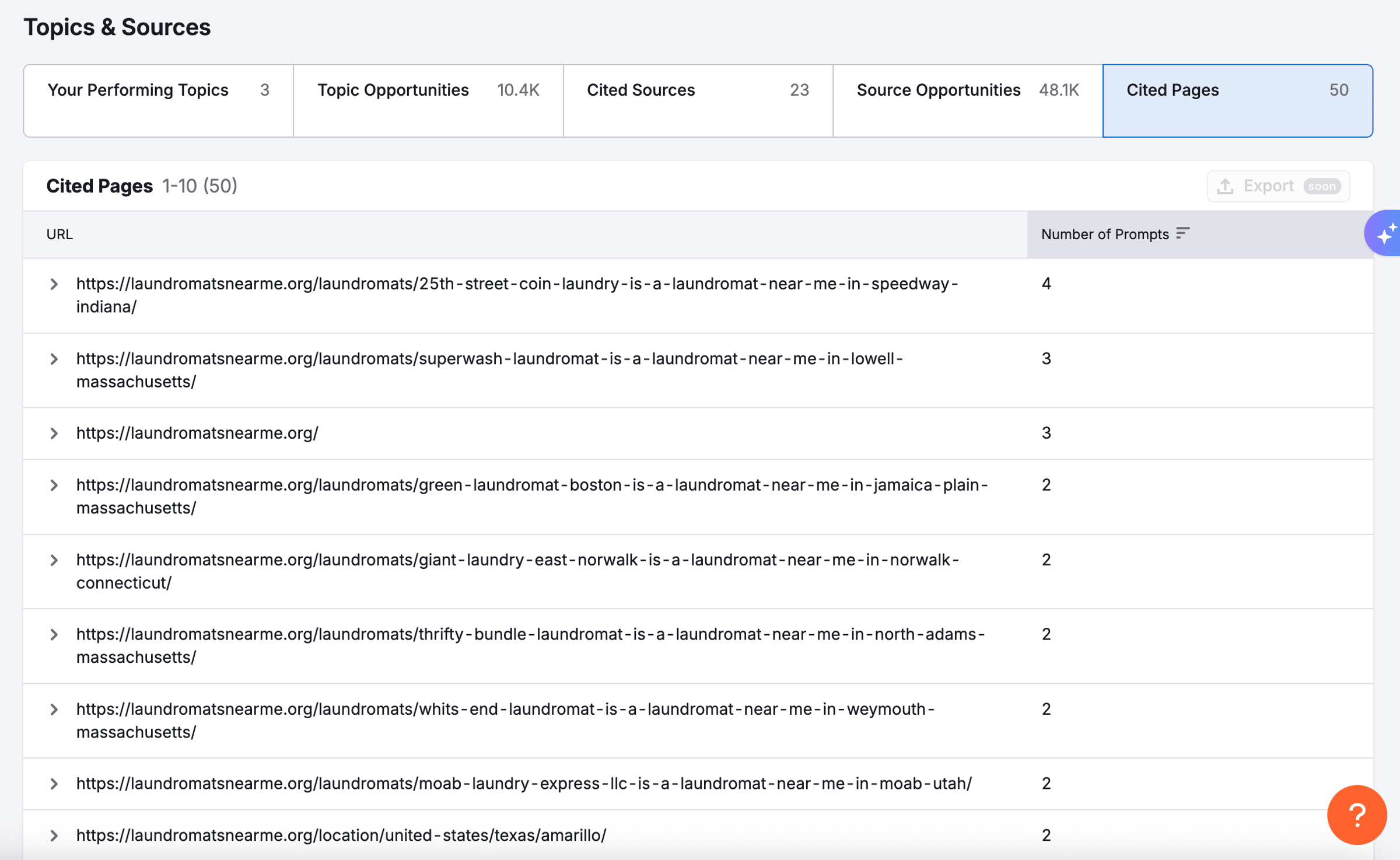Lately I've been playing around with SEMrush's AI SEO Toolkit so I popped Jerry's directory, laundromatsnearme.org, into their AI visibility tracker to see if its being referenced by any LLMs.