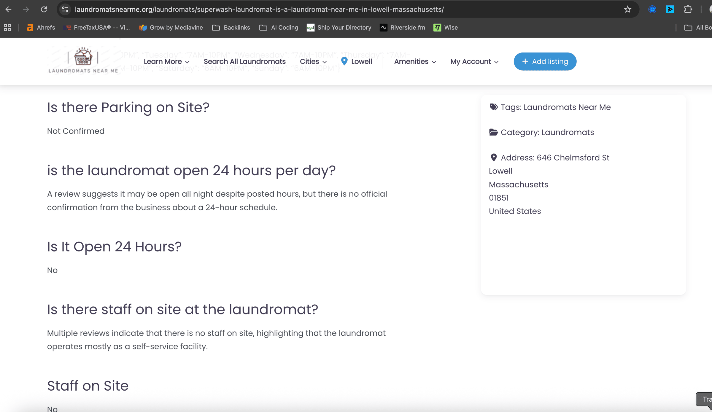 Before you ask, no these listing pages aren't ranking on the first page of Google for keywords like "Laundromat in Iowell MA" or similar keywords.